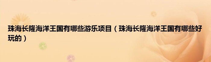 大家好,小常来为大家解答以上问题。珠海长隆海洋王国有哪些游乐项目,珠海长隆海洋王国有哪些好玩的很多人还不知道,现在让我们一起来看看吧!