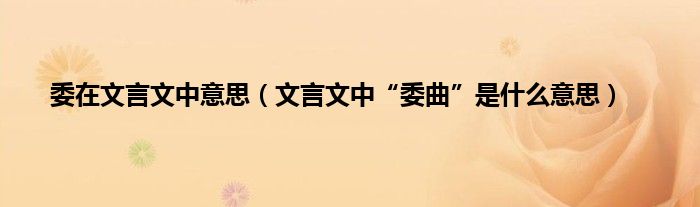 大家好,小常来为大家解答以上问题。委在文言文中意思,文言文中“委曲”是什么意思很多人还不知道,现在让我们一起来看看吧!