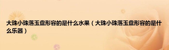 大家好,小常来为大家解答以上问题。大珠小珠落玉盘形容的是什么水果,大珠小珠落玉盘形容的是什么乐器很多人还不知道,现在让我们一起来看看吧!
