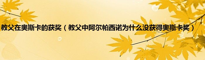 大家好,小常来为大家解答以上问题。教父在奥斯卡的获奖,教父中阿尔帕西诺为什么没获得奥斯卡奖很多人还不知道,现在让我们一起来看看吧!