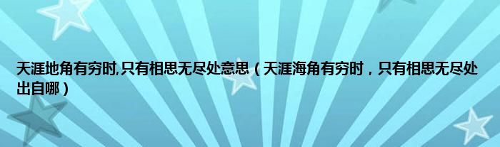 原句应是:天涯地角有穷时,只有相思无尽处。意思是:天涯地角再远也有穷尽终了那一天,只有怀人的愁思却是无限绵长、没有尽期啊。