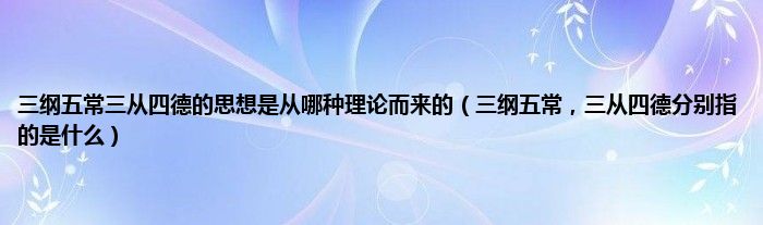 大家好,小常来为大家解答以上问题。三纲五常三从四德的思想是从哪种理论而来的,三纲五常,三从四德分别指的是什么很多人还不知道,现在让我们一起来看看吧!