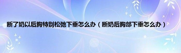 大家好,小科来为大家解答以上问题。断了奶以后胸特别松弛下垂怎么办,断奶后胸部下垂怎么办很多人还不知道,现在让我们一起来看看吧!