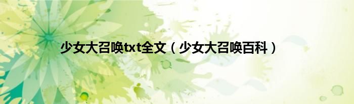 大家好,小常来为大家解答以上问题。少女大召唤txt全文,少女大召唤百科很多人还不知道,现在让我们一起来看看吧!