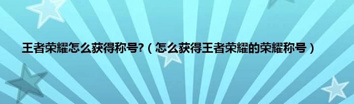 大家好,小常来为大家解答以上问题。王者荣耀怎么获得称号?,怎么获得王者荣耀的荣耀称号很多人还不知道,现在让我们一起来看看吧!