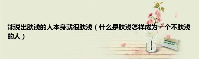 大家好,小常来为大家解答以上问题。能说出肤浅的人本身就很肤浅,什么是肤浅怎样成为一个不肤浅的人很多人还不知道,现在让我们一起来看看吧!