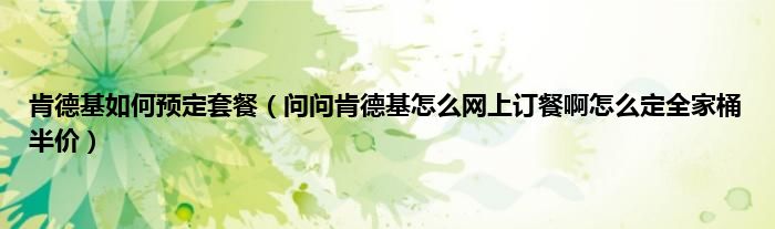 大家好,小常来为大家解答以上问题。肯德基如何预定套餐,问问肯德基怎么网上订餐啊怎么定全家桶半价很多人还不知道,现在让我们一起来看看吧!