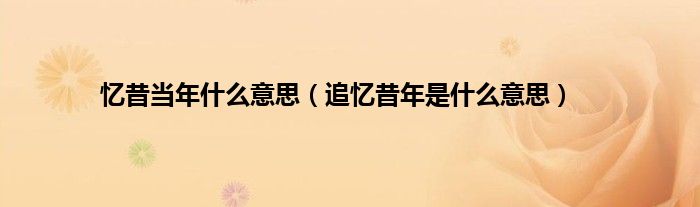 大家好,小常来为大家解答以上问题。忆昔当年什么意思,追忆昔年是什么意思很多人还不知道,现在让我们一起来看看吧!