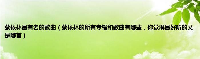 大家好,小常来为大家解答以上问题。蔡依林最有名的歌曲,蔡依林的所有专辑和歌曲有哪些,你觉得最好听的又是哪首很多人还不知道,现在让我们一起来看看吧!