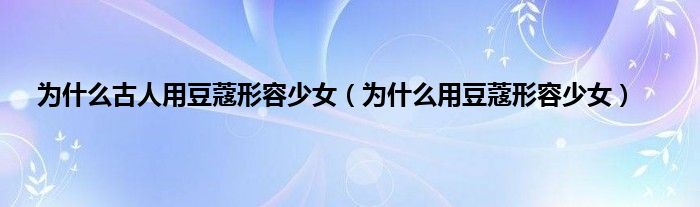 大家好,小常来为大家解答以上问题。为什么古人用豆蔻形容少女,为什么用豆蔻形容少女很多人还不知道,现在让我们一起来看看吧!