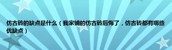 大家好,小常来为大家解答以上问题。仿古砖的缺点是什么,我家铺的仿古砖后悔了,仿古砖都有哪些优缺点很多人还不知道,现在让我们一起来看看吧!