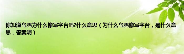 大家好,小常来为大家解答以上问题。你知道乌鸦为什么像写字台吗?什么意思,为什么乌鸦像写字台,是什么意思,答案呢很多人还不知道,现在让我们一起来看看吧!