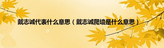 大家好,小常来为大家解答以上问题。戴志诚代表什么意思,戴志诚爬墙是什么意思很多人还不知道,现在让我们一起来看看吧!