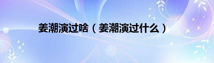 大家好,小常来为大家解答以上问题。姜潮演过啥,姜潮演过什么很多人还不知道,现在让我们一起来看看吧!