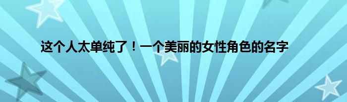 大家好,综合小编来为大家讲解下。这个人太单纯了!一个美丽的女性角色的名字这个很多人还不知道,现在让我们一起来看看吧!