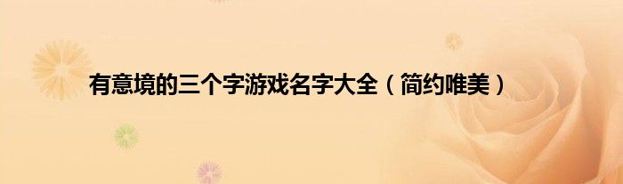 大家好,综合小编来为大家讲解下。有意境的三个字游戏名字大全,简约唯美这个很多人还不知道,现在让我们一起来看看吧!