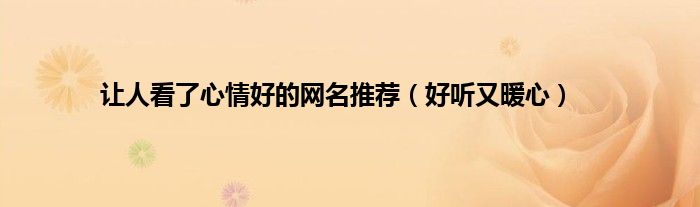 大家好,综合小编来为大家讲解下。让人看了心情好的网名推荐,好听又暖心这个很多人还不知道,现在让我们一起来看看吧!