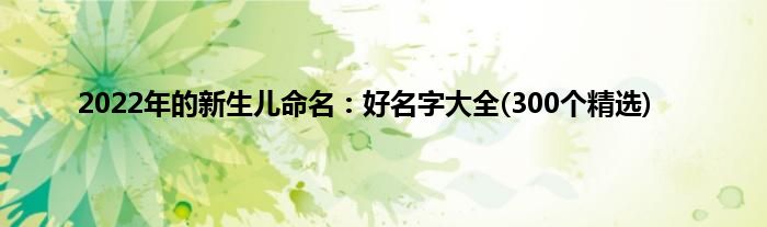大家好,综合小编来为大家讲解下。2022年的新生儿命名:好名字大全(300个精选)这个很多人还不知道,现在让我们一起来看看吧!