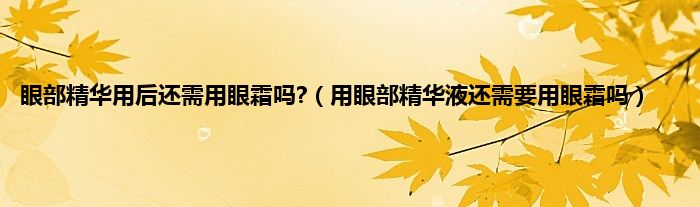大家好,小科来为大家解答以上问题。眼部精华用后还需用眼霜吗?,用眼部精华液还需要用眼霜吗很多人还不知道,现在让我们一起来看看吧!