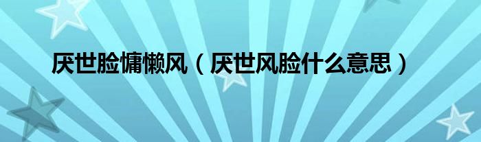 大家好,小科来为大家解答以上问题。厌世脸慵懒风,厌世风脸什么意思很多人还不知道,现在让我们一起来看看吧!
