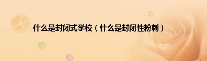 大家好,小科来为大家解答以上问题。什么是封闭式学校,什么是封闭性粉刺很多人还不知道,现在让我们一起来看看吧!