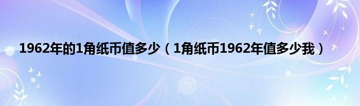 大家好,小常来为大家解答以上问题。1962年的1角纸币值多少,1角纸币1962年值多少我很多人还不知道,现在让我们一起来看看吧!