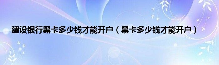 大家好,小常来为大家解答以上问题。建设银行黑卡多少钱才能开户,黑卡多少钱才能开户很多人还不知道,现在让我们一起来看看吧!