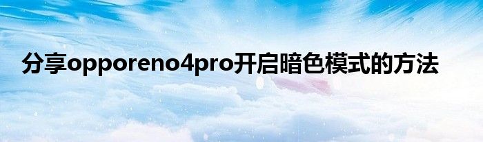 现在大家使用手机的频率越来越频繁,手机也为我们提供了许多的便利,今天小编也来说一下这个分享opporeno4pro开启暗色模式的方法相关的文章,这个操作其实不复杂,接下来就给大家介绍一下分享opporeno4pro开启暗色模式的方法,一起来看看吧: