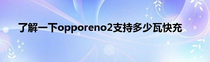 现在大家使用手机的频率越来越频繁,手机也为我们提供了许多的便利,今天小编也来说一下这个了解一下opporeno2支持多少瓦快充相关的文章,这个操作其实不复杂,接下来就给大家介绍一下了解一下opporeno2支持多少瓦快充,一起来看看吧:
