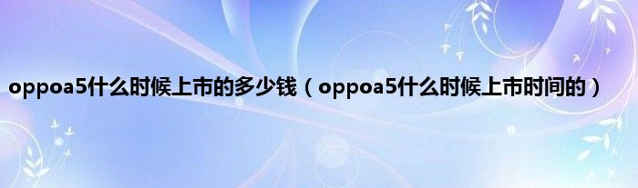 大家好,小常来为大家解答以上问题。oppoa5什么时候上市的多少钱,oppoa5什么时候上市时间的很多人还不知道,现在让我们一起来看看吧!