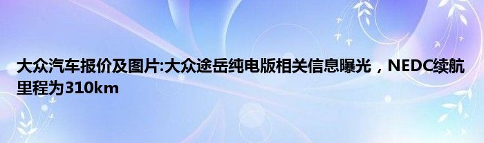 今天来分享一篇个人对大众汽车报价及图片:大众途岳纯电版相关信息曝光,NEDC续航里程为310km相关分析,众所周知,无论是在坊间民众,还是在汽车媒体的议论中,都是不错的,至于产品到底香不香,通过测试还是可以对大众汽车报价及图片:大众途岳纯电版相关信息曝光,NEDC续航里程为310km的产品力分析分析的,一起来看看吧: