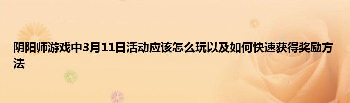 今天弟哥来聊聊一篇关于阴阳师游戏中3月11日活动应该怎么玩以及如何快速获得奖励方法的文章,游戏是很多人的选择,但是游戏玩多了也会身心疲惫,现在就为大家来简单介绍下阴阳师游戏中3月11日活动应该怎么玩以及如何快速获得奖励方法,希望对各位小伙伴们有所帮助。