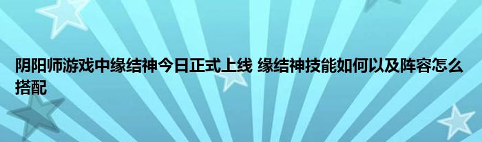 今天弟哥来聊聊一篇关于阴阳师游戏中缘结神今日正式上线 缘结神技能如何以及阵容怎么搭配的文章,游戏是很多人的选择,但是游戏玩多了也会身心疲惫,现在就为大家来简单介绍下阴阳师游戏中缘结神今日正式上线 缘结神技能如何以及阵容怎么搭配,希望对各位小伙伴们有所帮助。