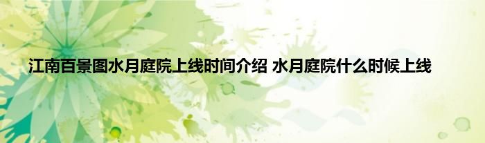 以上就是江南百景图水月庭院上线时间的内容,希翼对大家有所帮助。