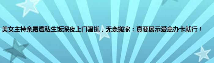 感谢你在百忙之中抽出时间阅读美女主持余霜遭私生饭深夜上门骚扰,无奈搬家:真要展示爱意办卡就行!这篇文章。你觉得今天美女主持余霜遭私生饭深夜上门骚扰,无奈搬家:真要展示爱意办卡就行!话题怎么样?关于美女主持余霜遭私生饭深夜上门骚扰,无奈搬家:真要展示爱意办卡就行!这篇文章的任何评论都可以告诉我。你的每一个建议都是对小编辑的肯定和鼓励。小编明天会继续给你带来更多的好内容。我希望你不要错过。感谢支持哟!