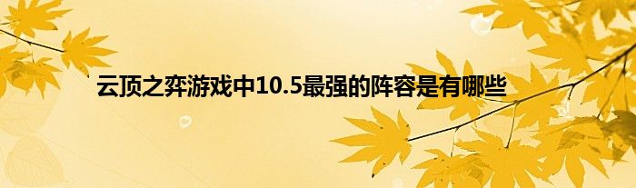 今天弟哥来聊聊一篇关于云顶之弈游戏中10.5最强的阵容是有哪些的文章,游戏是很多人的选择,但是游戏玩多了也会身心疲惫,现在就为大家来简单介绍下云顶之弈游戏中10.5最强的阵容是有哪些,希望对各位小伙伴们有所帮助。