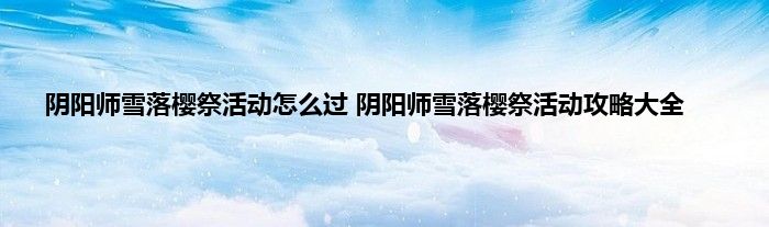 阴阳师雪落樱祭活动攻略:
