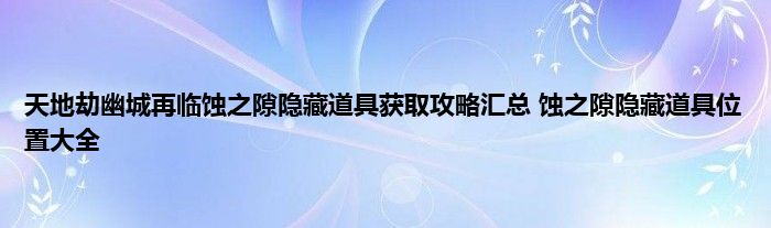 【天地劫】蚀之隙里的隐藏道具(待续)