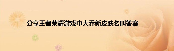 今天弟哥来聊聊一篇关于王者荣耀游戏中大乔新皮肤名叫答案的文章,游戏是很多人的选择,但是游戏玩多了也会身心疲惫,现在就为大家来简单介绍下王者荣耀游戏中大乔新皮肤名叫答案,希望对各位小伙伴们有所帮助。