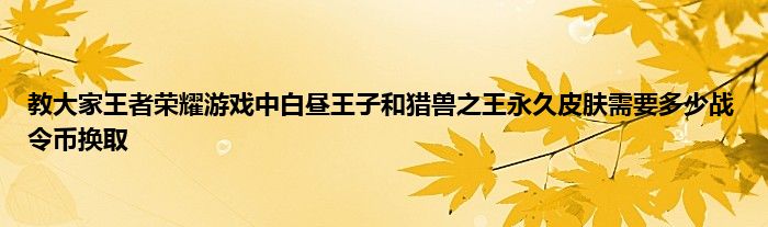 今天弟哥来聊聊一篇关于王者荣耀游戏中白昼王子猎兽之王永久皮肤需要多少战令币换取的文章,游戏是很多人的选择,但是游戏玩多了也会身心疲惫,现在就为大家来简单介绍下王者荣耀游戏中白昼王子猎兽之王永久皮肤需要多少战令币换取,希望对各位小伙伴们有所帮助。