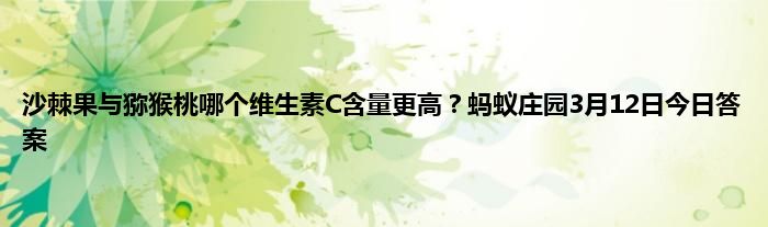 沙棘果和猕猴桃都是维C含量比较高的水果,今天蚂蚁庄园的问题刚好问到了沙棘果和猕猴桃哪个维C含量更高,很多小伙伴不知道答案,答对的可以获得奖励,沙棘的根、茎、叶、花、果,特别是沙棘果实含有丰富的维生素C和生物活性物质,猕猴桃也含丰富维C,那么问题答案是啥呢,一起看看吧。