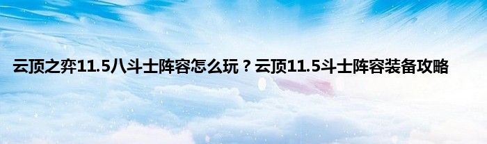 云顶之弈迎来了11.5版本,又涌现出了一批新的玩法和流派,一些老的玩法和流派也有了新的补强等等,很多玩家在问11.5版本的斗士阵容该怎么搭配,选什么阵容和装备,面对其他阵容该怎么打,小编收集了相关内容,跟着小编一起了解一下吧。