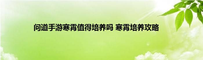 问道手游寒霄值得培养吗?