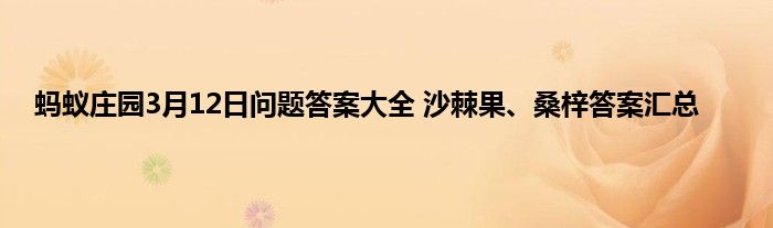 今天是3月12日,蚂蚁庄园3月12日今天的问题问到了沙棘果和桑梓,很多小伙伴不知道问题答案是什么,沙棘果和猕猴桃哪个维C更高呢?桑梓在古时候为什么被人叫做故乡呢,下面就跟着小编一起看看吧。