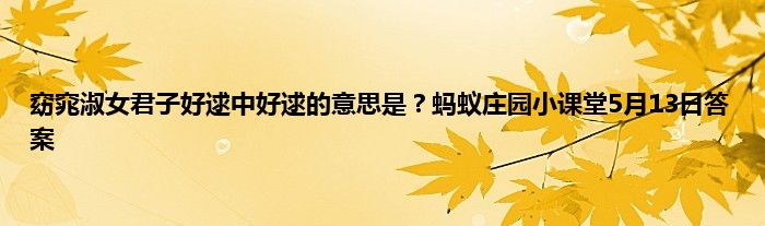 《诗经》名句“窈窕淑女,君子好逑”中,“好逑”的意思是?这是蚂蚁庄园小课堂5月13日的问题,这次的问题难度难度很高,而答对题目以后我们才可以领取小鸡饲料。不知道答案的朋友不妨看看具体的答案和详细的答案解析吧。