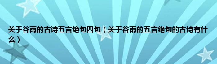 大家好,小科来为大家解答以上问题。关于谷雨的古诗五言绝句四句,关于谷雨的五言绝句的古诗有什么很多人还不知道,现在让我们一起来看看吧!