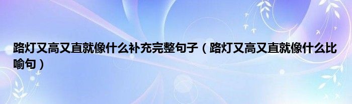大家好,小科来为大家解答以上问题。路灯又高又直就像什么补充完整句子,路灯又高又直就像什么比喻句很多人还不知道,现在让我们一起来看看吧!