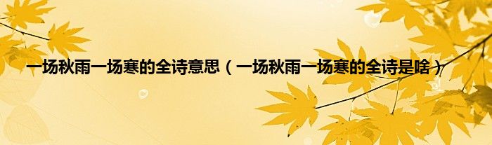 大家好,小科来为大家解答以上问题。一场秋雨一场寒的全诗意思,一场秋雨一场寒的全诗是啥很多人还不知道,现在让我们一起来看看吧!
