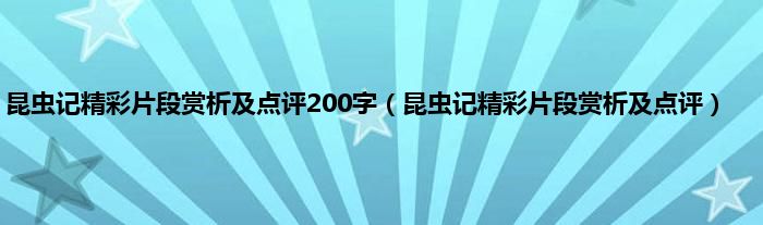 大家好,小科来为大家解答以上问题。昆虫记精彩片段赏析及点评200字,昆虫记精彩片段赏析及点评很多人还不知道,现在让我们一起来看看吧!