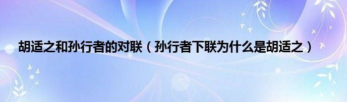 大家好,小科来为大家解答以上问题。胡适之和孙行者的对联,孙行者下联为什么是胡适之很多人还不知道,现在让我们一起来看看吧!